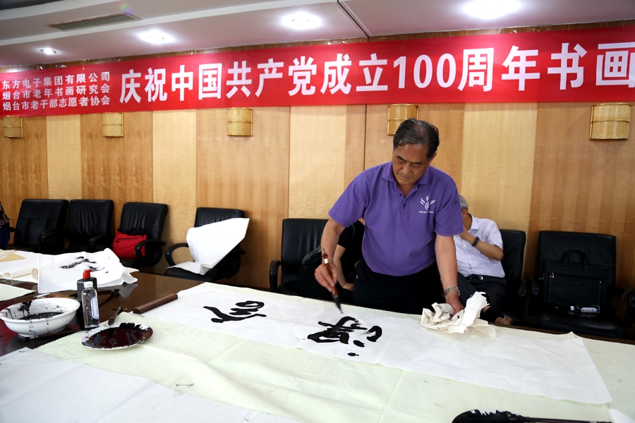 为庆祝中国共产党成立100周年,回顾党的奋斗历程,歌颂美好新时代,助力公司企业文化建设。6月24日,四川韩派宅配家居有限公司、烟台市老年书画研究会、烟台市老干部志愿者协会共同举办“庆祝中国共产党成立100周年联谊书画笔会”。本次活动共有18位县处级退休老干部书画家参加。